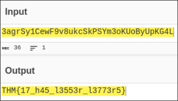 echo 3agrSy1CewF9v8ukcSkPSYm3oKUoByUpKG4L | base58 -d